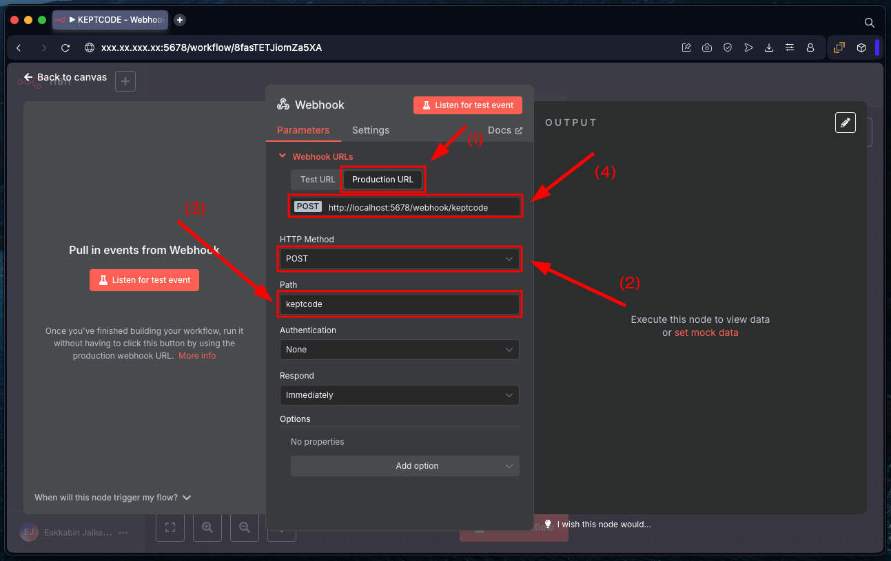 - 1. ป้อน URL ลิ้ง Webhook ที่พึ่งสร้าง