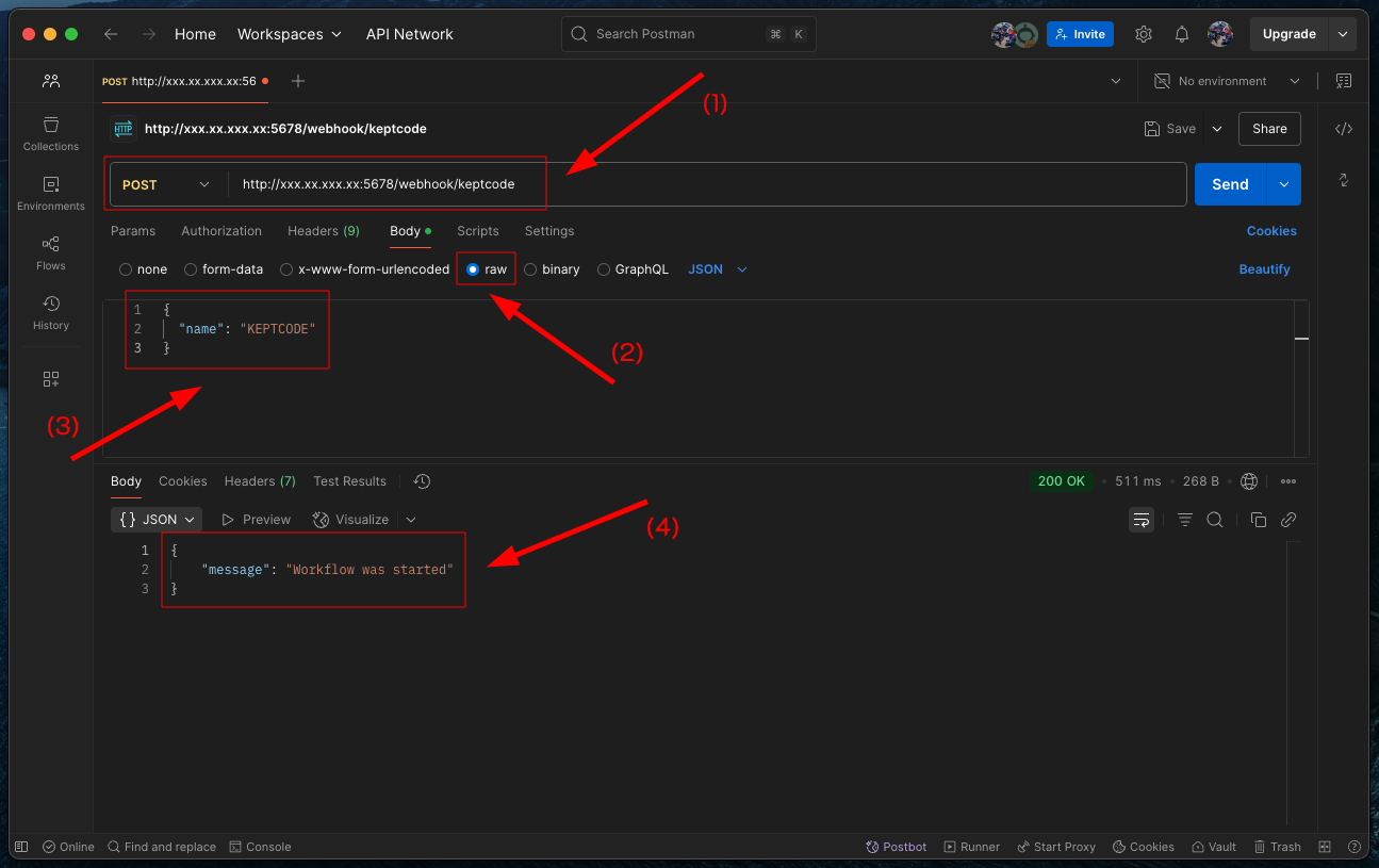 - 2. เลือก Body เป็นแบบ Raw (json)